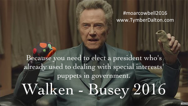 Because you know you want a president who can shove his hand up the ass of special interest puppets in government and make them play nice with each other… #moarcowbell2016 #WalkenBusey2016 #moarcowbell2016 #WalkenBusey2016 Tagged on: #moarcowbell2016 #WalkenBusey2016