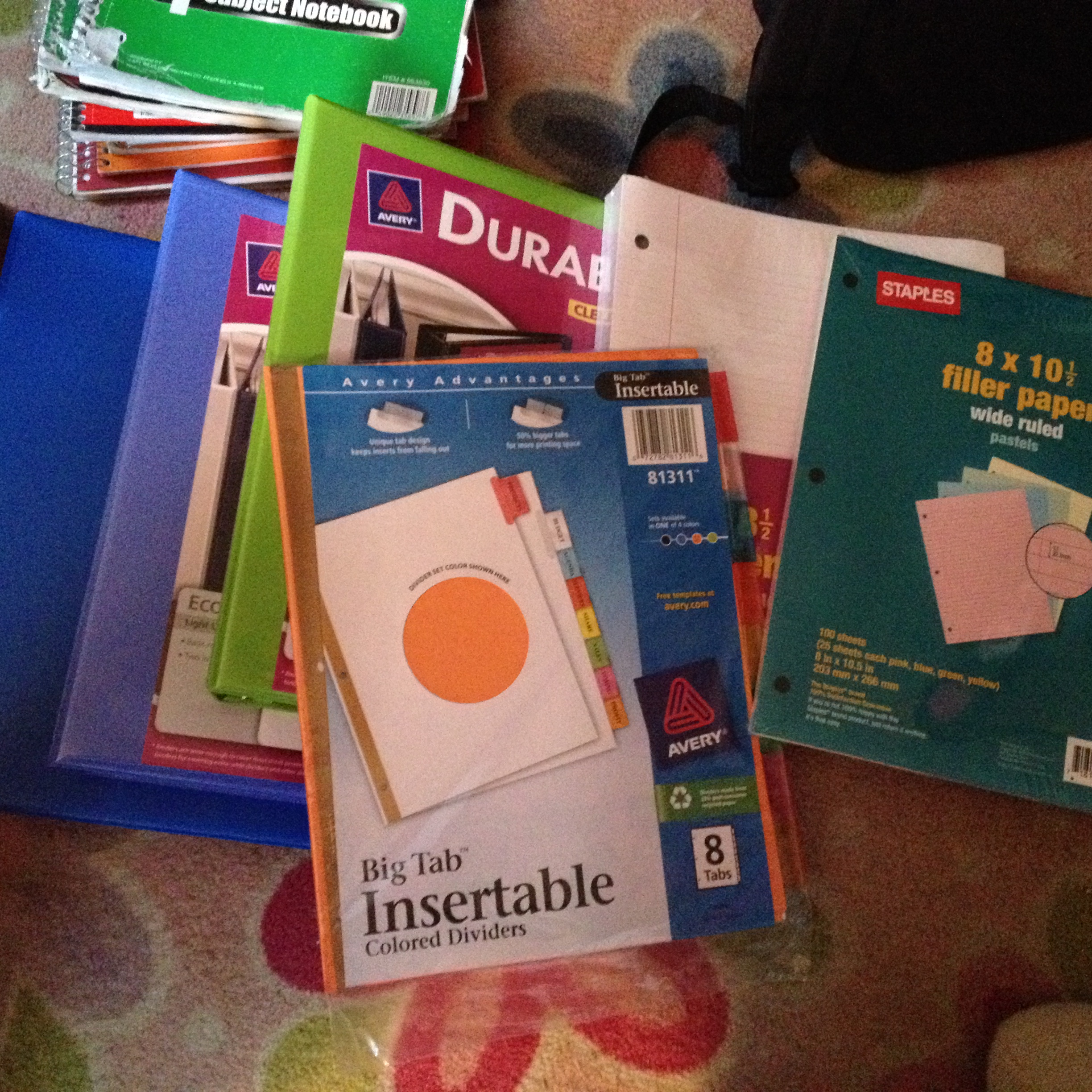 My must haves are wide ruled loose leaf paper & post-its. Also my pilot pen…not the pen company but a pen made for airplane pilots. It has a lighted nib so you can write in the dark. Keep it by the bed for those late night jottings.