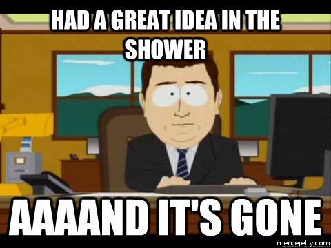 I used to keep my iPhone next to the shower to make quick notes, because no matter how much I tried, invariably I’d get out of the shower, forget to write it down, and later be like, aw, dammit.